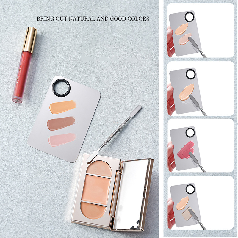 Stainless Steel Cosmetic Makeup Palette, Professional Cosmetic Mixing Makeup Palette Spatula Makeup Artist Tool, Beauty Salon Color Cream Mixing Palette With A Spatula Makeup Nail Art Palette